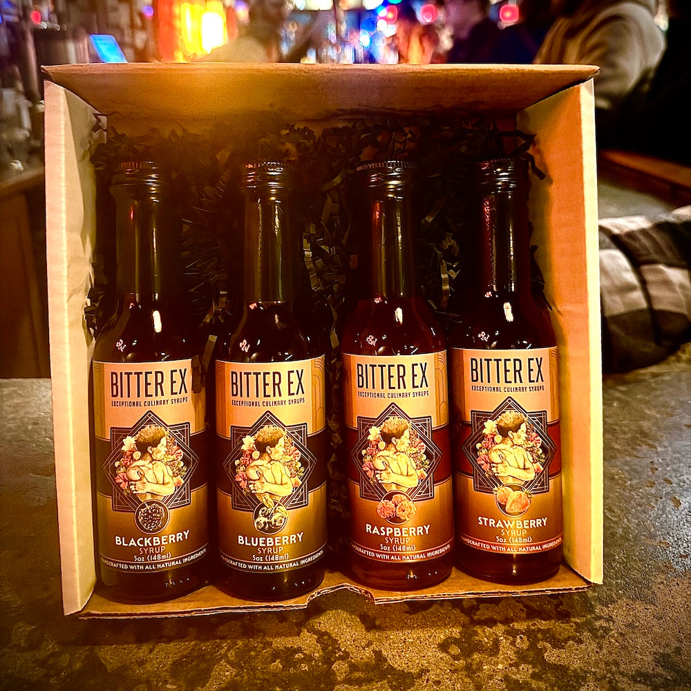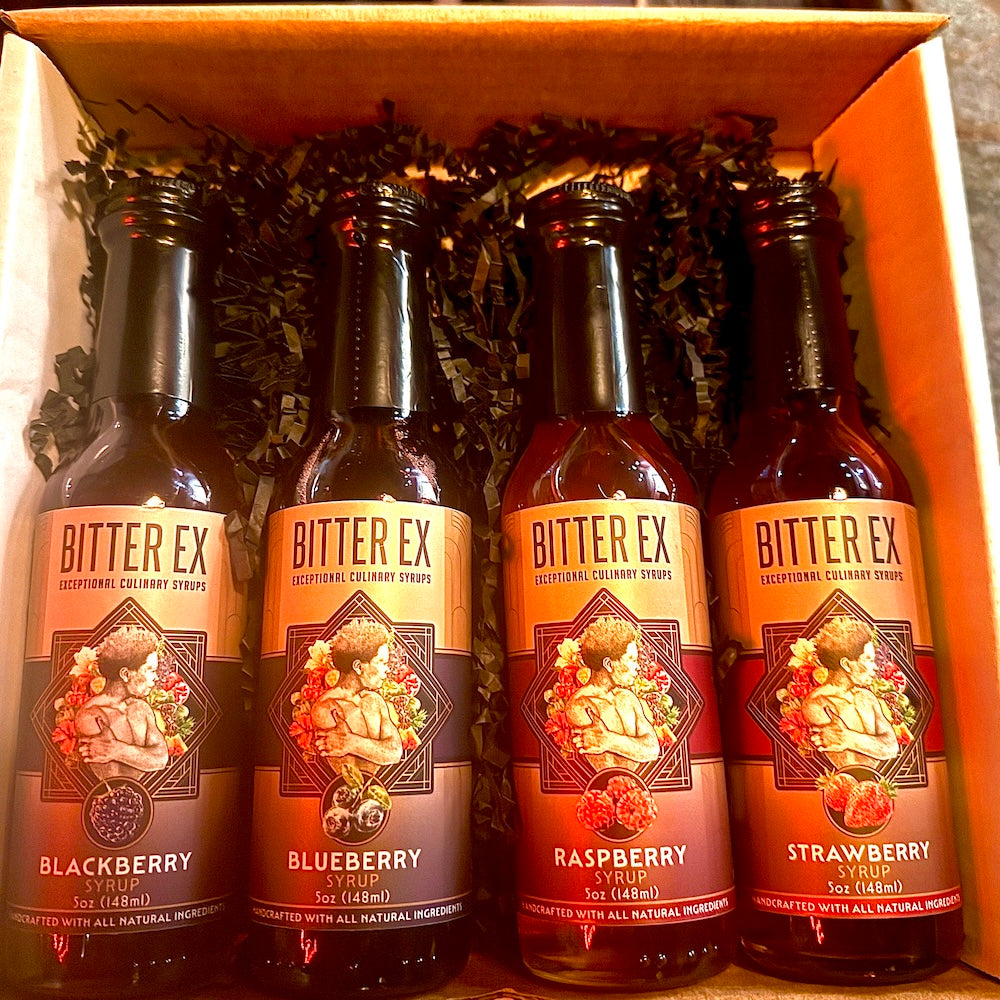 4 bottles of our 5oz berry flavors!: Blackberry, Blueberry, Raspberry, & Strawberry